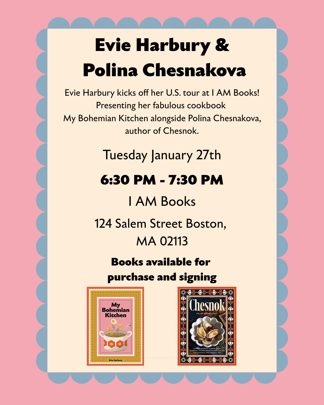 Evie Harbury kicks off her U.S. tour at I AM Books! Presenting her fabulous cookbook "My Bohemian Kitchen" alongside fellow cookbook author Polina Chesnakova ("Chesnok").