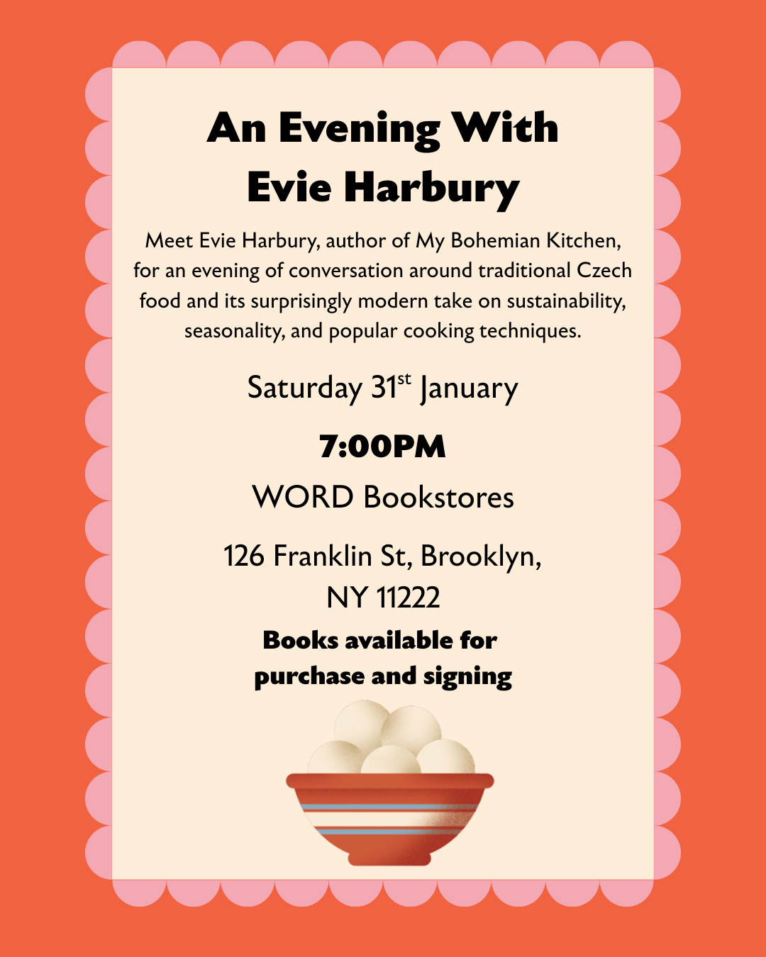 Evie Harbury will be introducing her debut novel, My Bohemian Kitchen and signing books at WORD Bookstore, Greenpoint, Brooklyn.